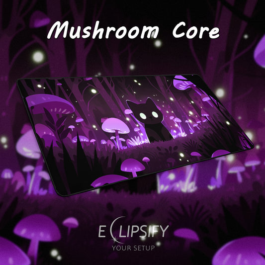 Mushroom Core: Kawaii Cat Purple Gaming Mouse Pad