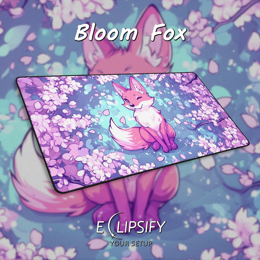 Bloom Fox: Kawaii Fox Cherry Blossom Gaming Mouse Pad