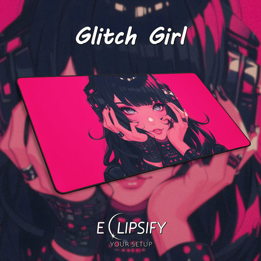 Glitch Girl: Pink Cyberpunk Anime Girl Gaming Mouse Pad