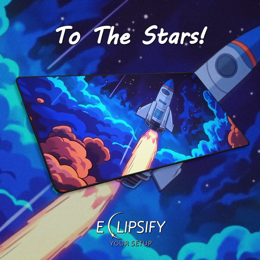 To The Stars: Cartoon Retro Rocket Gaming Mouse Pad