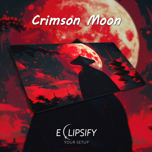 Crimson Moon: Japanese Samurai Gaming Mouse Pad