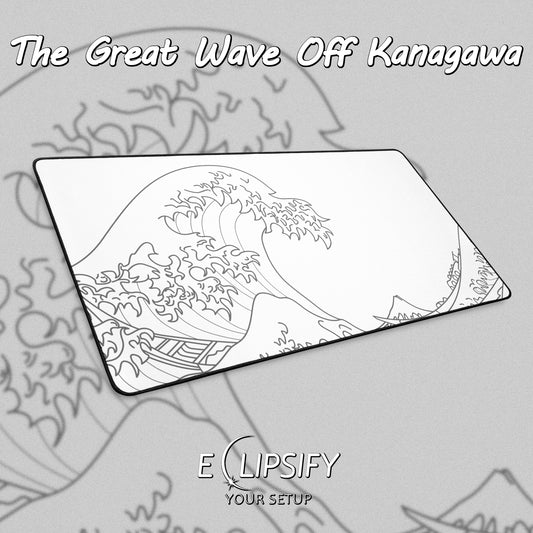 The Great Wave Off Kanagawa White Minimalist Gaming Mouse Pad