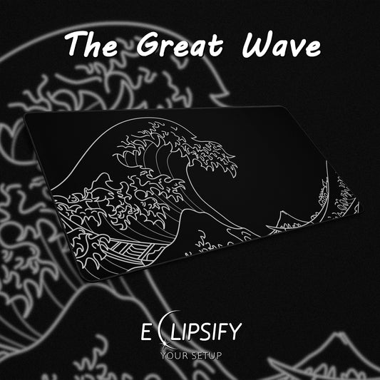 The Great Wave Off Kanagawa Black Minimalist Gaming Mouse Pad