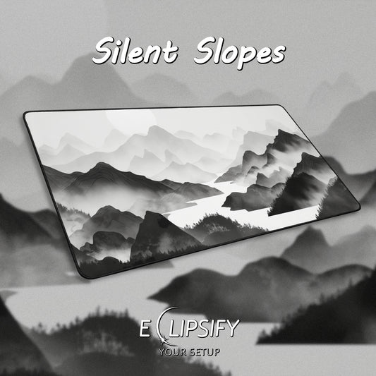 Silent Slopes: White And Grey Mountains Landscape Minimalist Mouse Pad