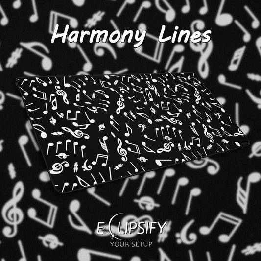 Harmony Lines: Music Notes Black Minimalist Pattern Mouse Pad