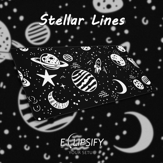 Stellar Lines: Black Space Pattern Minimalist Mouse Pad