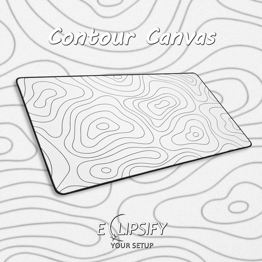 Contour Canvas: White Topographic Pattern Gaming Mouse Pad