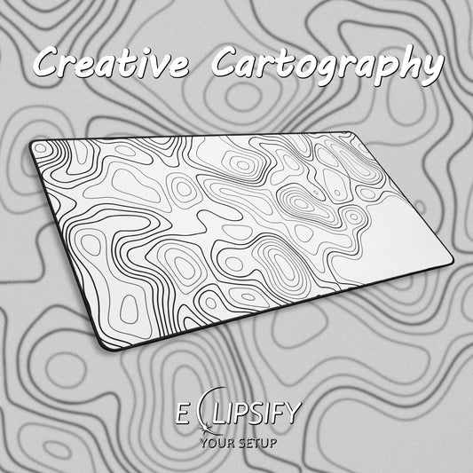 Creative Cartography: White Topographic Pattern Gaming Mouse Pad