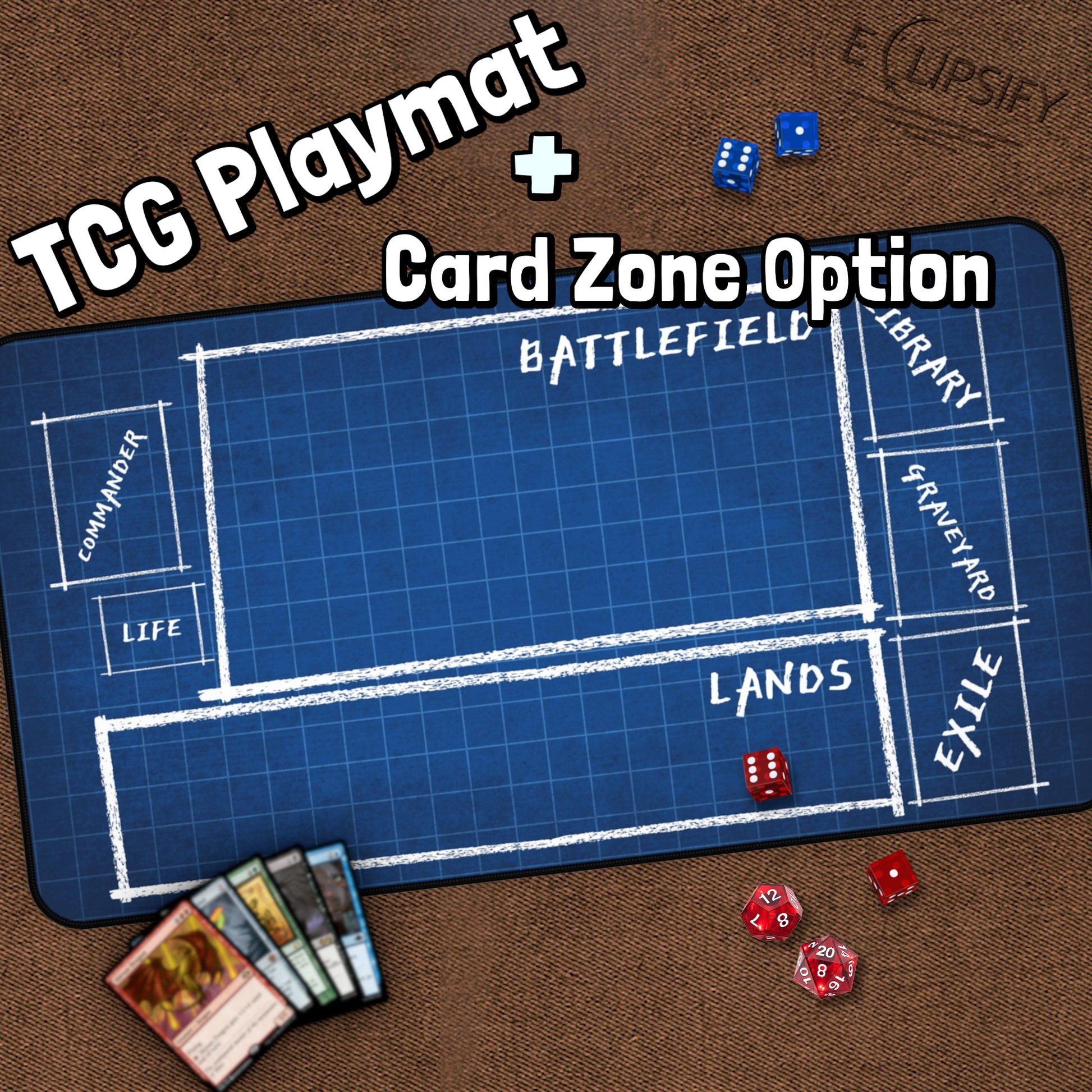 Eclipsify your trading card game experience with your own personal blueprint playmat! Made of 4mm thick neoprene material (smooth and thick), it has an anti-slip backing and a hemmed edge for durability and stability. Available in the standard 14" x 24" and 15.5" x 31" sizes.