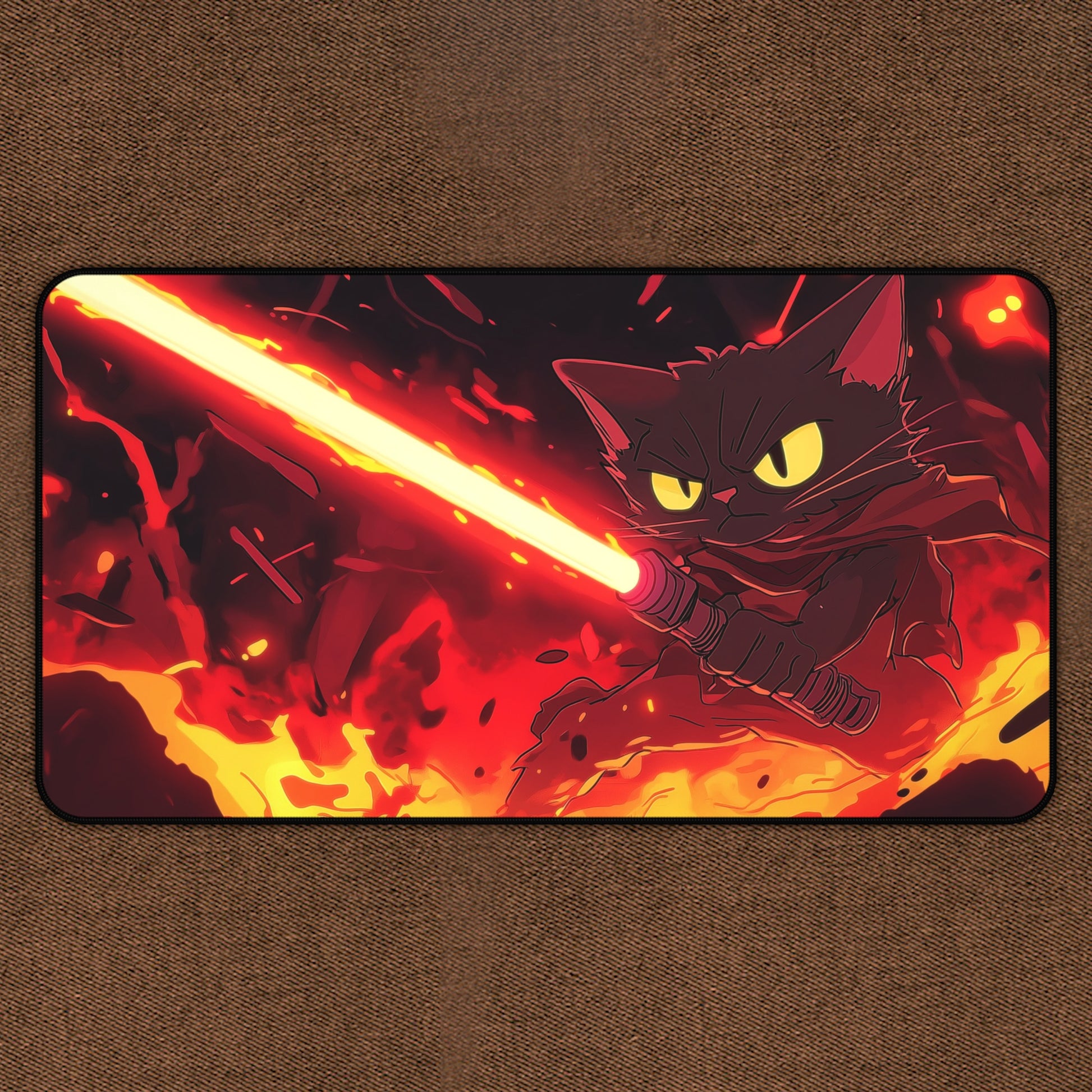 Eclipsify your trading card game experience with your own personal cat wars playmat! Made of 4mm thick neoprene material (smooth and thick), it has an anti-slip backing and a hemmed edge for durability and stability. Available in the standard 14" x 24" and 15.5" x 31" sizes.