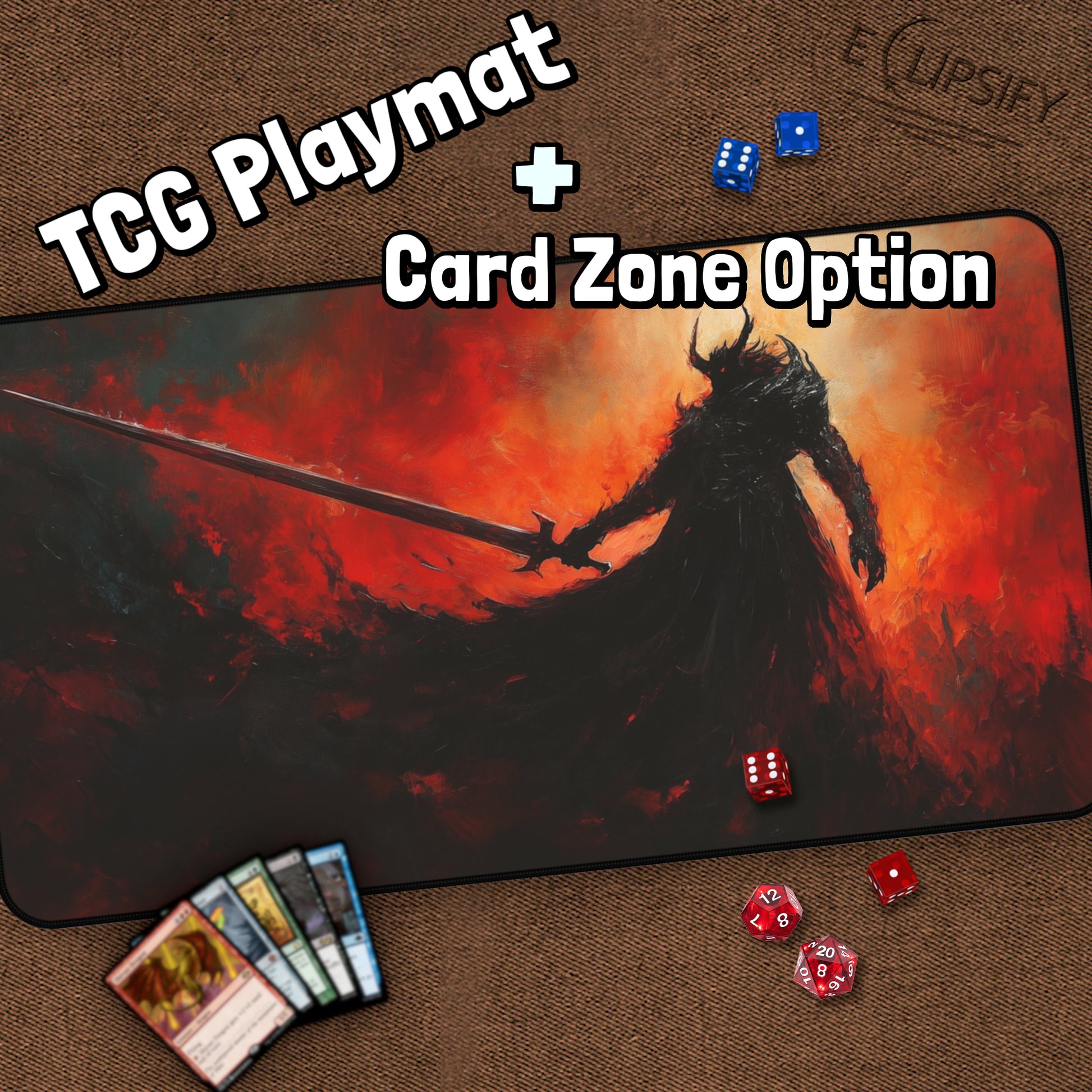 Eclipsify your trading card game experience with your own personal Demon Executioner playmat! Made of 4mm thick neoprene material (smooth and thick), it has an anti-slip backing and a hemmed edge for durability and stability. Available in the standard 14" x 24" and 15.5" x 31" sizes.