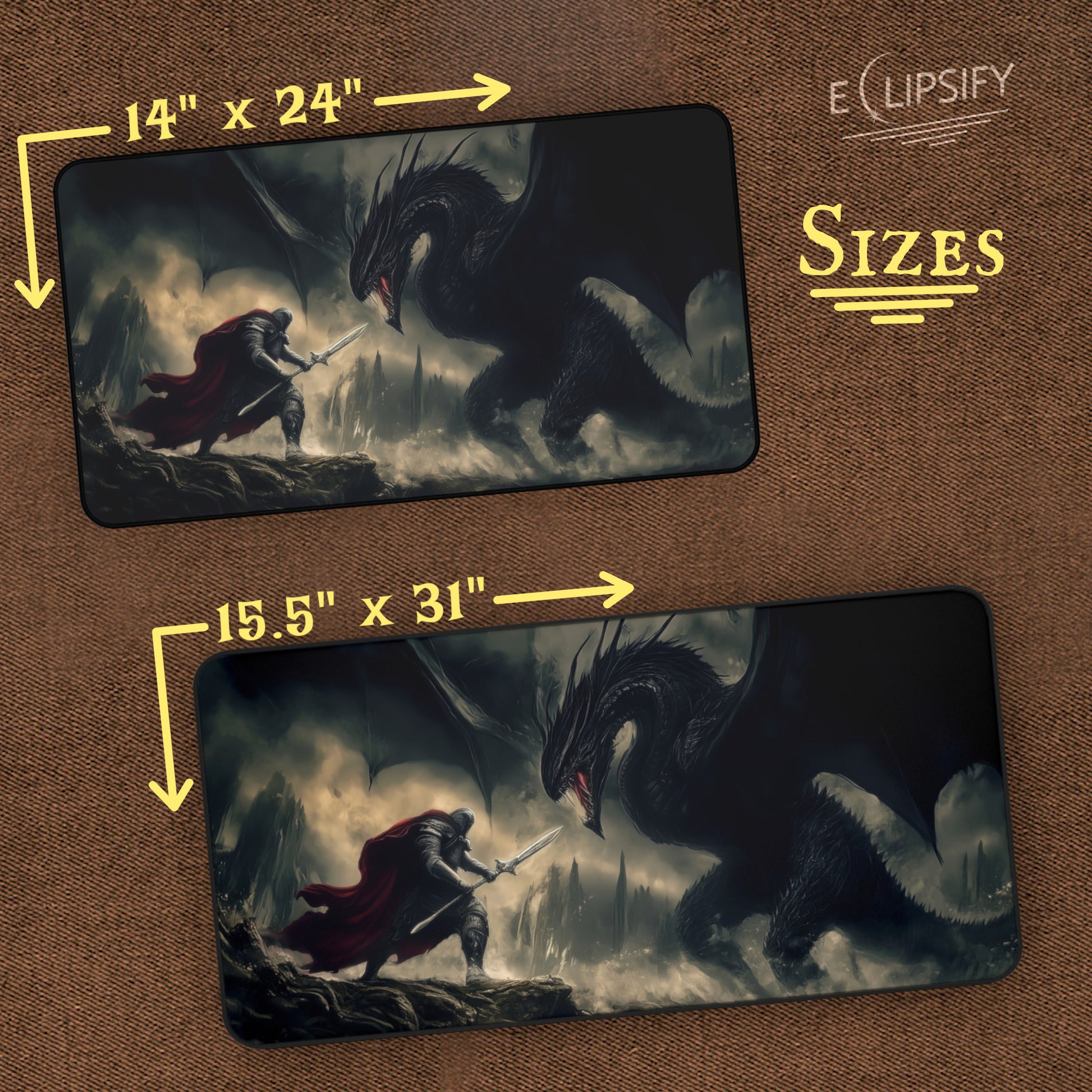 Eclipsify your trading card game experience with your own personal Drake Slayer playmat! Made of 4mm thick neoprene material (smooth and thick), it has an anti-slip backing and a hemmed edge for durability and stability. Available in the standard 14" x 24" and 15.5" x 31" sizes.