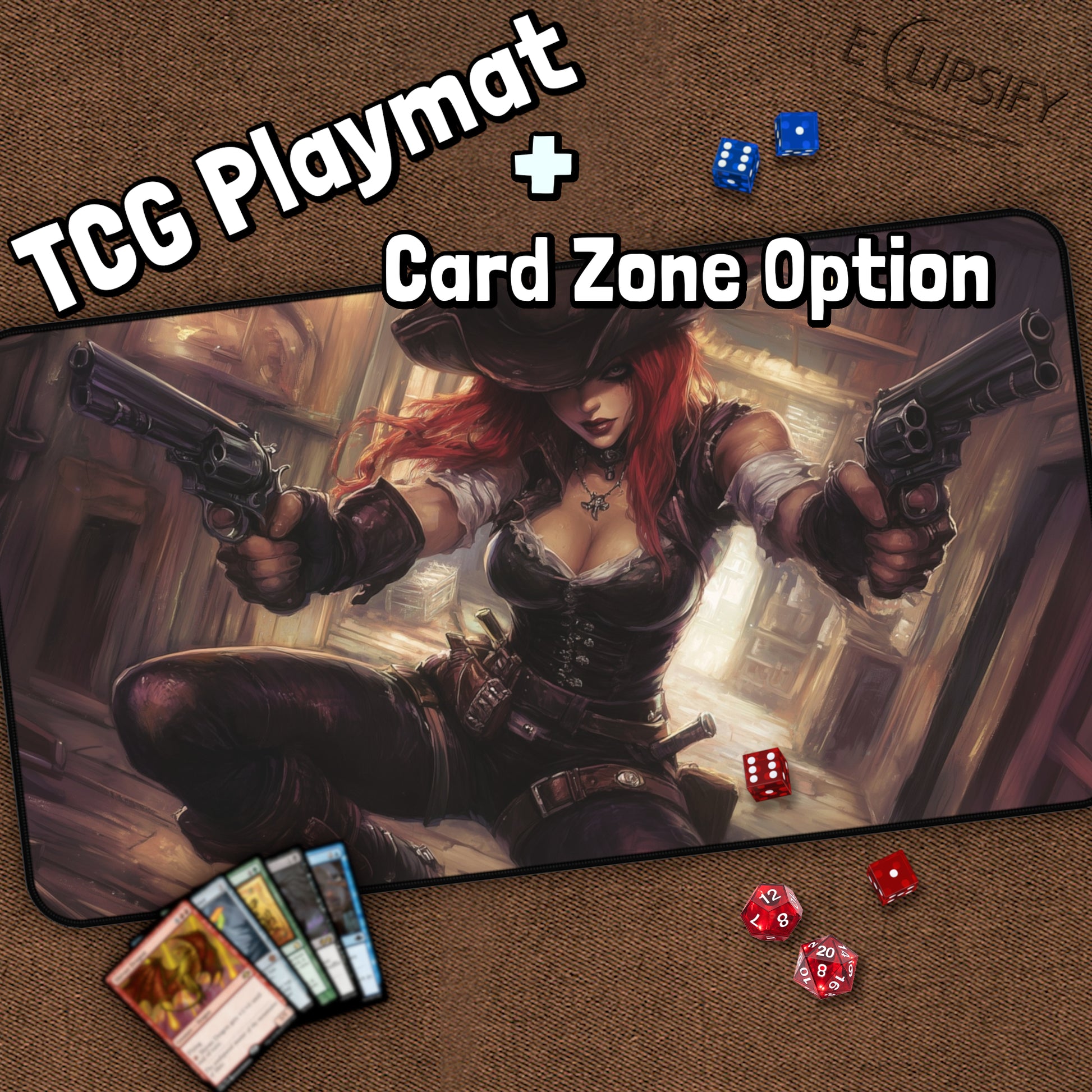Eclipsify your trading card game experience with your own personal Pirate Girl playmat! Made of 4mm thick neoprene material (smooth and thick), it has an anti-slip backing and a hemmed edge for durability and stability. Available in the standard 14" x 24" and 15.5" x 31" sizes.