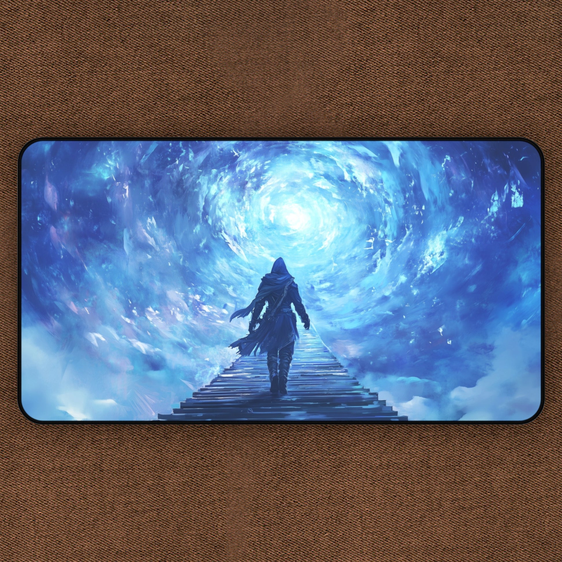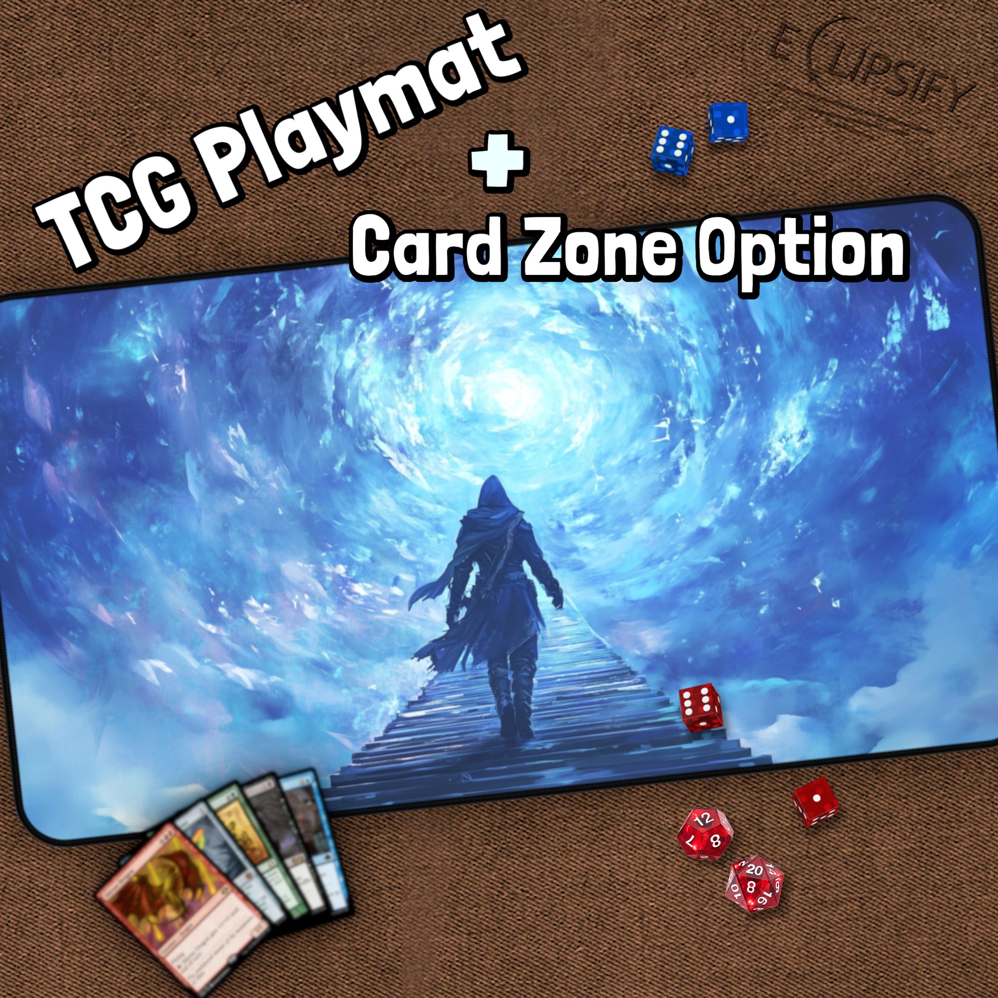 Eclipsify your trading card game experience with your own personal Stairway of the Silent Blade: Assassin playmat! Made of 4mm thick neoprene material (smooth and thick), it has an anti-slip backing and a hemmed edge for durability and stability. Available in the standard 14" x 24" and 15.5" x 31" sizes.